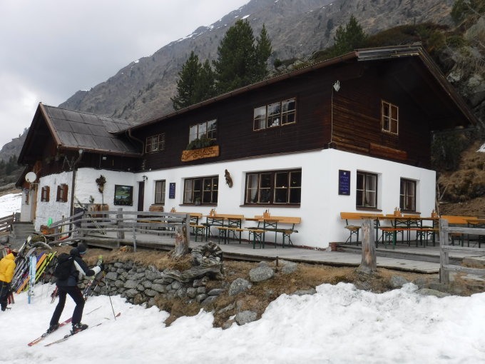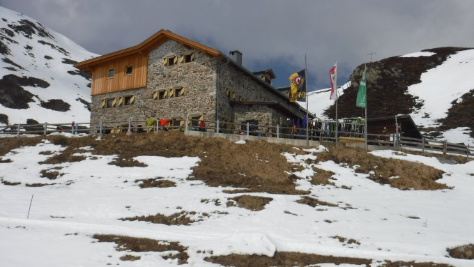 Nach mir stiegen über 30 Skitourengänger auf. Die Amberger Hütte war gut besucht.