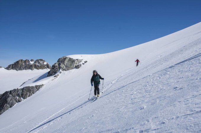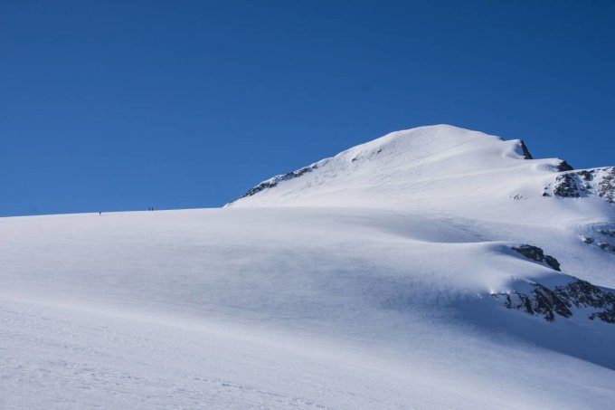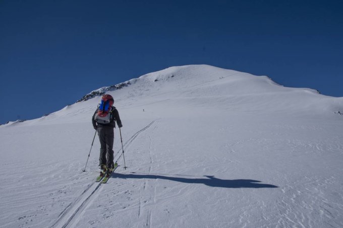 Beim Aufstieg ab Medelserhütte griffiger Hartschnee, im Gipfelhang Pulverschnee und eine gute Aufstiegsspur. Der Gletscher ist gut eingedeckt, keine offenen Spalten.
