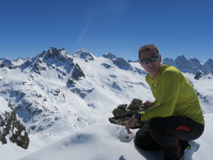 Wählte die unverspurte Abfahrt direkt vom Gipfelkreuz
