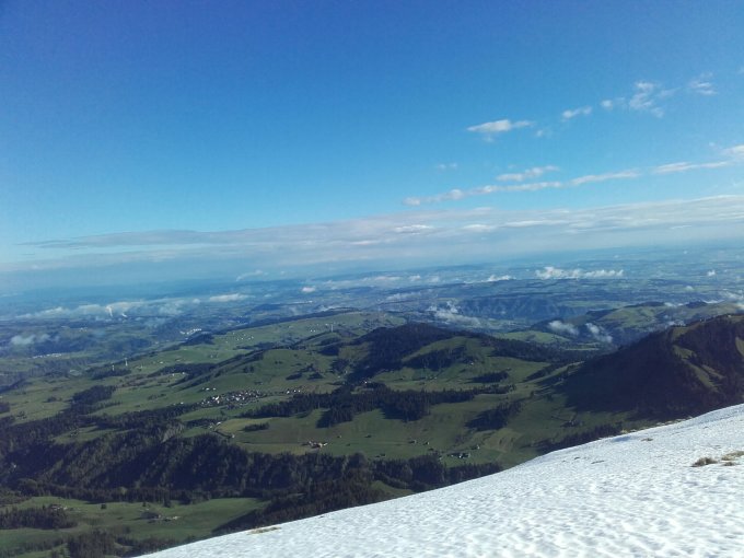 Fast alles schneefrei und gut zu gehen. Auch der Regen der Nacht war nicht mehr sehr zu sehen, dafür viel mehr die Morgensonne die den Berg erhellt.