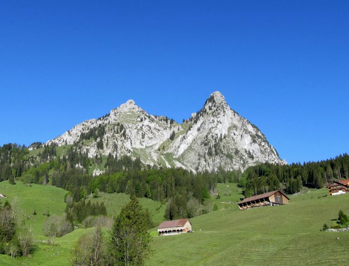 Wir sind die Route (sh. Routenbeschreibung) heute aber im Uhrzeigersinn über die Alpwirtschaft Zwüschet Mythen und den Vorgipfel gegangen und zurück über die Ostflanke. Die Rinne am Vorgipfel muss man so abklettern. Neben Haken ist mittlerweile auch ein Kettengriff vorhanden.