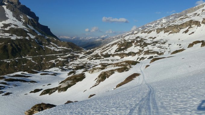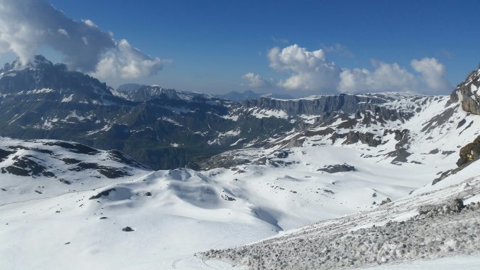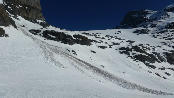 Fantastische Tour! Die Abfahrt via Chammlilücke lohnt sich! Hier bei 2'600 Hm eine Nassschneelawine zu überwinden.
