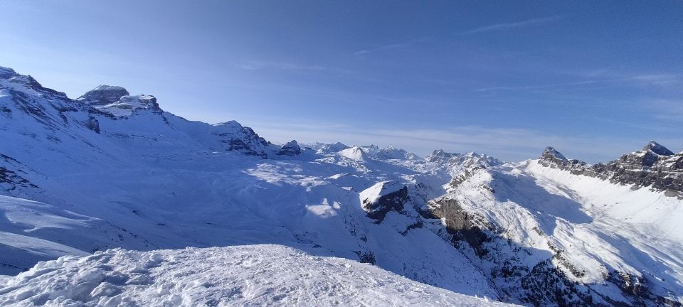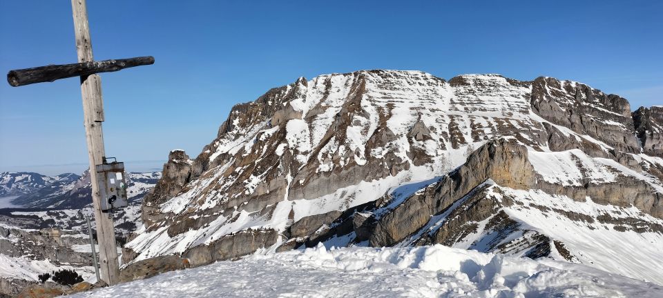 Unten schon einige apere Stellen mit wenig Schnee, bis unterhalb Stäfeli eisige Verhältnisse, dann Pulverschnee bis Gipfel, aber das meiste ist Verfahren, heute ein leichter Föhn der nicht gross störte.