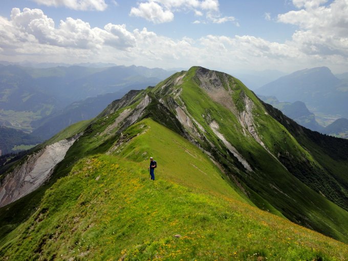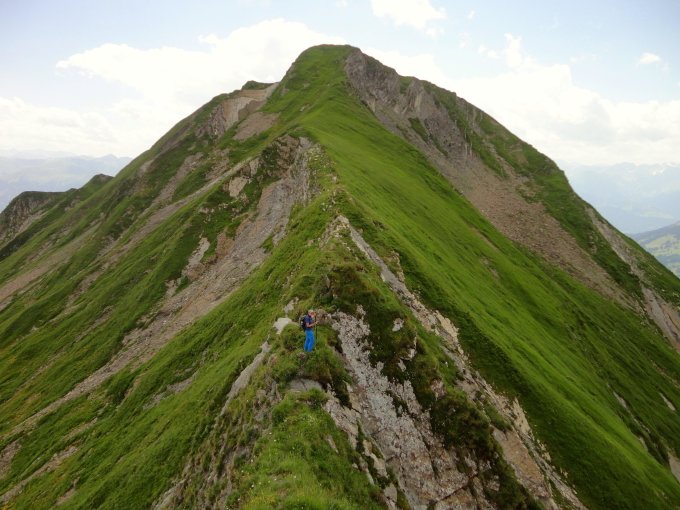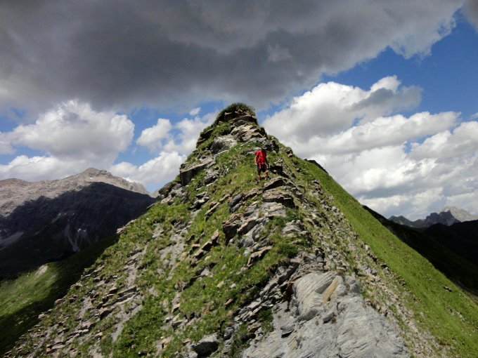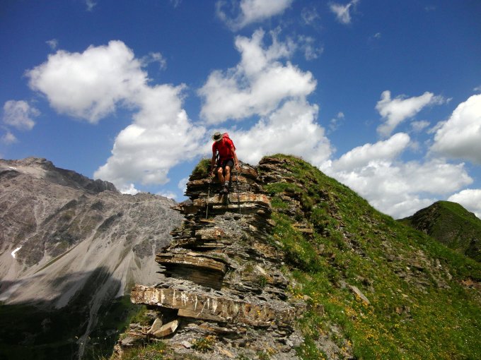 Schöne Gratüberschreitung mit vielen Auf- und Abstiegen, wenigen kurzen Kraxelstellen, stellenweise ausgesetzt und zur Zeit mit üppiger Blumenpracht. Trittsicherheit und Schwindelfreiheit erforderlich.