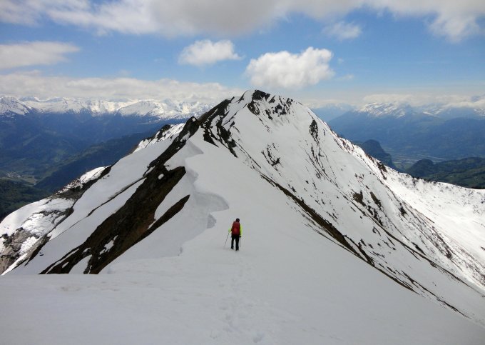 Wir sind Ende Mai schon mal von der Sassauna in die umgekehrte Richtung gestartet, dann aber im Abstieg vom Pfäwi wegen Grieselschnee im plattigen Gelände umgekehrt. Der Kontrast zu den jetzigen Verhältnissen war sehr eindrücklich.