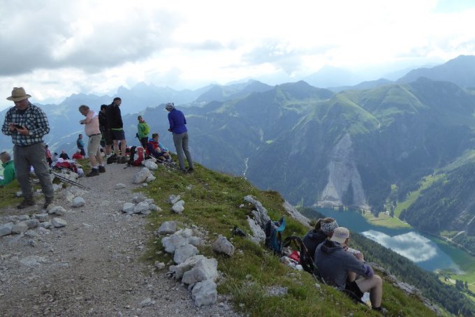 Heute war nicht nur am Brenner Stau, sondern auch in Hinterstein und am Gaishorn. Natürlich ist es ein bekannter und beliebter Berg, sowohl im Sommer und Winter, eigentlich zu allen Jahreszeiten. Seit 1980 war ich heute das 87_zigste mal oben, aber so einen Ansturm habe ich noch nie erlebt. Um 7h war der P (auf der Höh) in Hinterstein schon voll belegt. Der Bus zum Giebelhaus Abf.7:15h war auch schon gut besetzt. Auf der Willersalpe um 8:15h meinte ich es fände eine Bergmesse statt. Unterwegs, am Grat und oben vereinsamte man keine Minute lang. Siehe dazu auch div. Bilder.