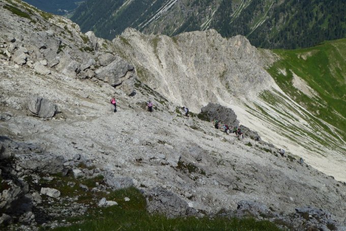Ideales Wanderwetter. Durch die vergangenen Regentage, waren oberhalb der Willersalpe die Wiesenpassagen noch etwas schmierig. NW-Grat bestens trocken.
