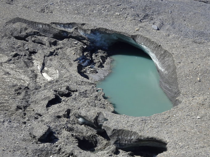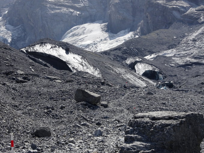 Von den früheren schönen Eisgewölben sind einige zusammengefallen und verschwunden. Dasselbe wird es den im Bild Festgehaltenen ergehen. Ein leider unaufhaltsames Prozess.
