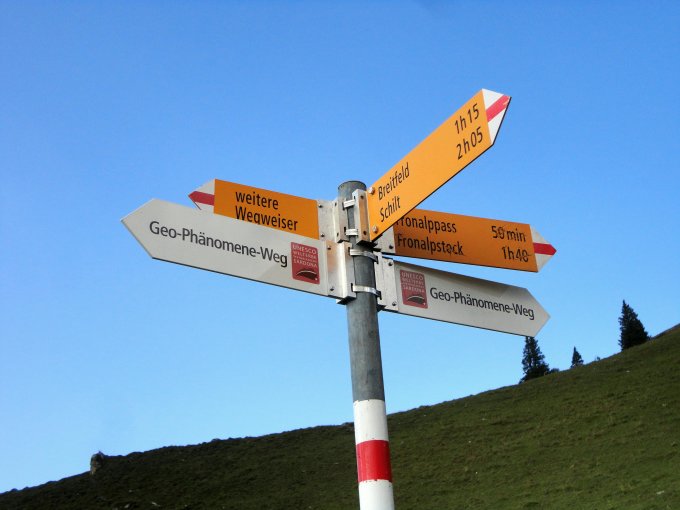 Wir durften am Berggasthaus Fronalpstock parken, von wo man zum Bergweg Richtung Hofalpli erst etwas absteigen muss.