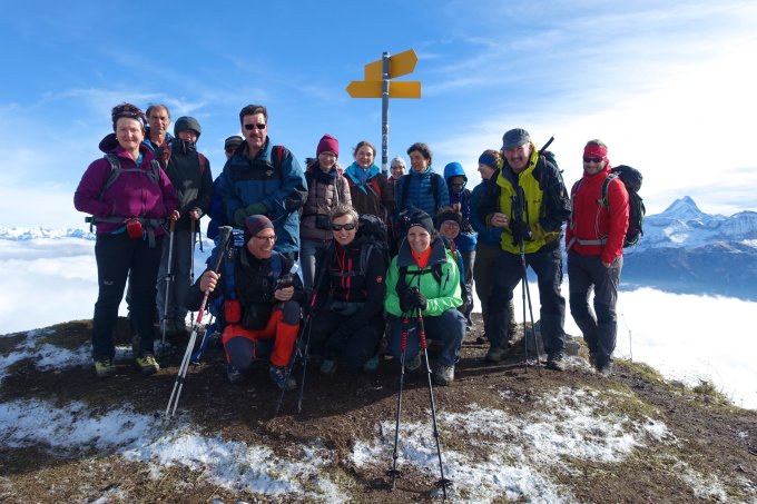 Am frühen Vormittag hartnäckige Hochnebeldecke bis ca. 1800 Meter, welche sich später teilweise auflöste. Auf dem Grat und den Gipfeln zügiger und kalter Wind.