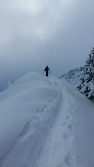 Wetter am Start 9:15h noch sehr trübe. Dies änderte sich aber schnell bis wir oben waren hellte es auf und die Sicht für Abfahrt war gut. Oben ab 1500m reichlich Schnee, der Haupthang oberer Teil noch gut, unterer Teil mäßig. Leider geht es noch nicht ohne "Feindberührung", die neuesten Ski sollte man nicht unbedingt mitnehmen. Wir hatten das Glück als Abfahrer Nr. 3 u. 4. zu starten und somit oben Traumverhältnisse geniesen zu können. Weiter unten noch genügend Auswahl hatten sich runter zu mogeln.