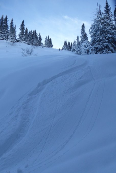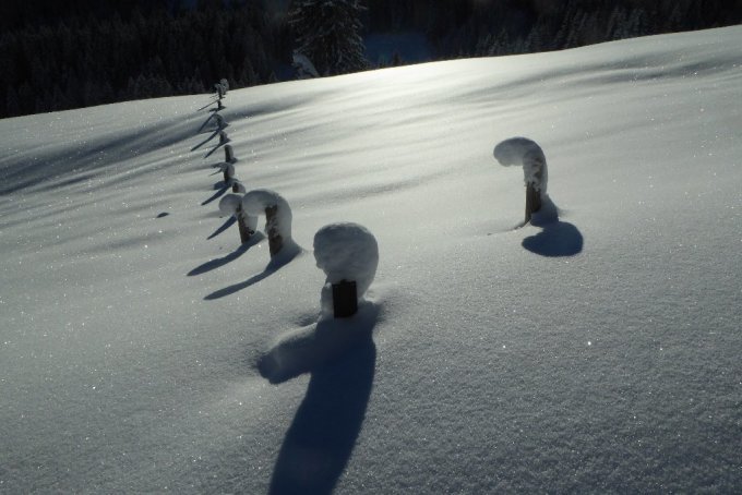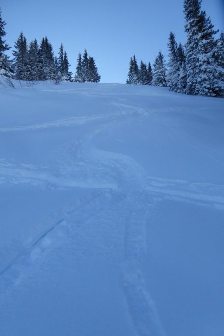 Heute Vormittag wieder Wintermärchen pur. Gute Spur, Danke an unbekannt, war sicherlich nicht ganz bequem. Den steilen Gipfelhang(Anstieg) konnte ich 2x als 1. bei idealen Knietiefem Pulver abfahren (die Spurer wählten die andere Abfahrtsvariante).