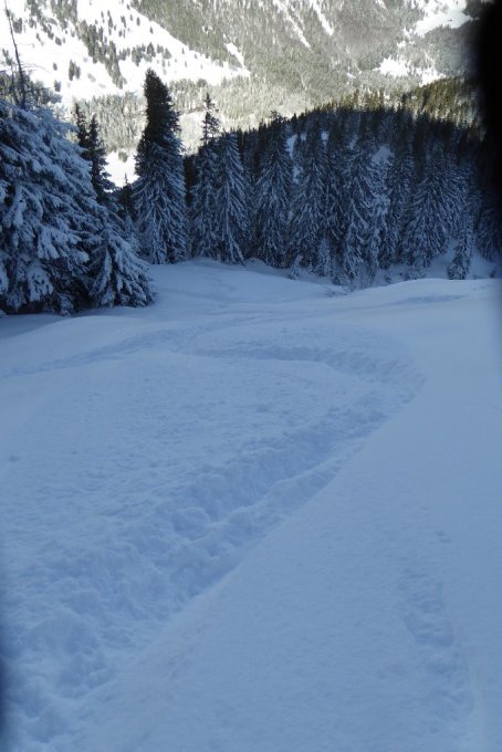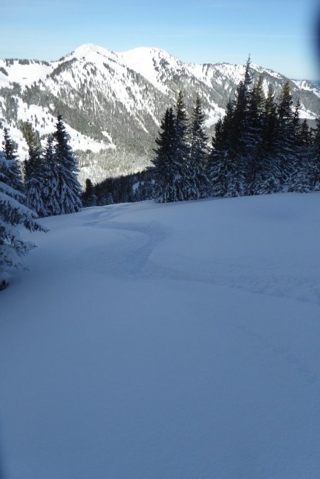 Es folgten 2 SS-Läufer u. noch 5 Skitourler. Nach Steihang mußte man immer wieder in der Aufstiegsspur beschleunigen um runter zu kommen, war bis zur Alpe fast zuviel des Guten.