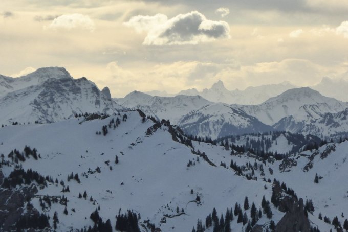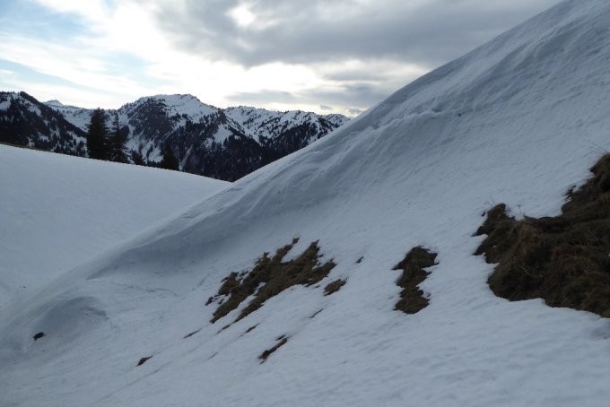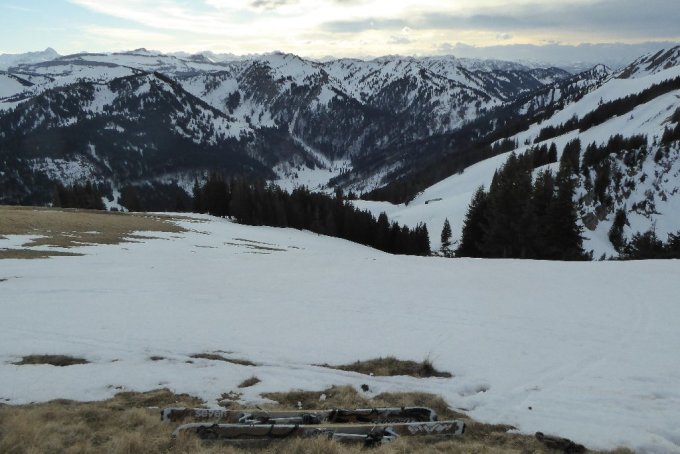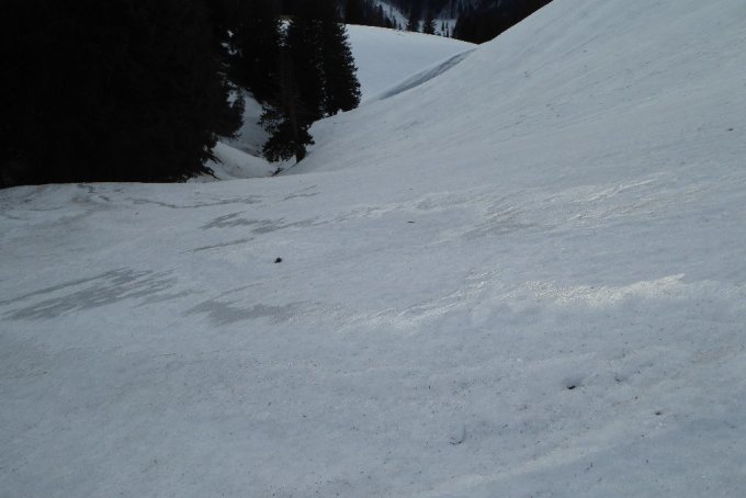 Hatte spekuliert, dass es heute wie vor 3 Tagen (Gündleskopf) auffirnt. War leider nicht so, von allem was, aber halt nicht der "Brüller". Der steile S-Hang ob Wieslealp war schon im Aufstieg sehr weich und in der Abfahrt zum absaufen. Oben Deckel zwar griffiger wie gestern beim blanken "Wellblech" am "Bleichi". Es ist halt so momentan. Vielleicht war ich heut auch 2 Std. zu spät dran, denn am Nachmittag zog es von Westen langsam zu. (Siehe dazu auch die Bilder).