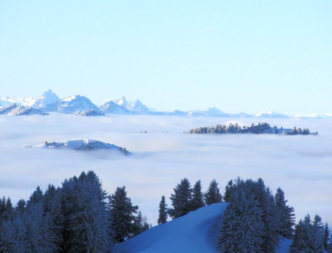 Bei Dorwees lichtete sich dann der Nebel und es war strahlend schön bei einem riesigen Nebelmeer.