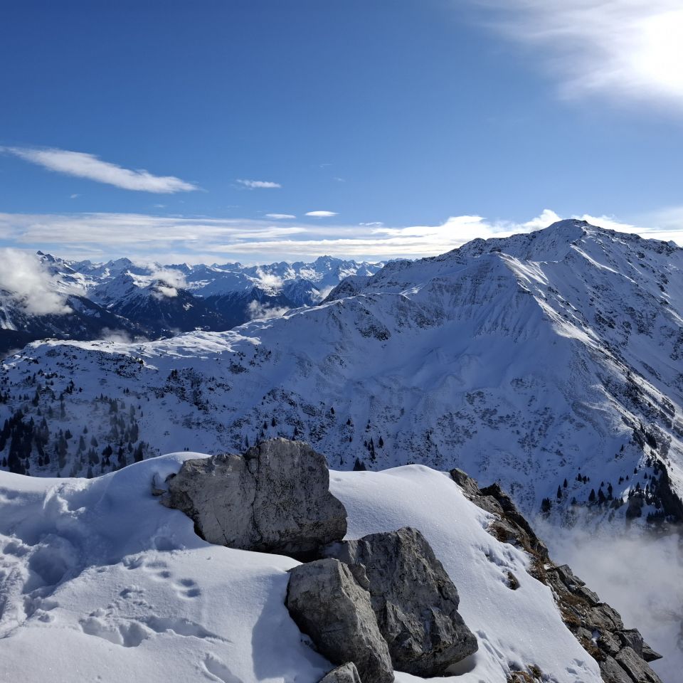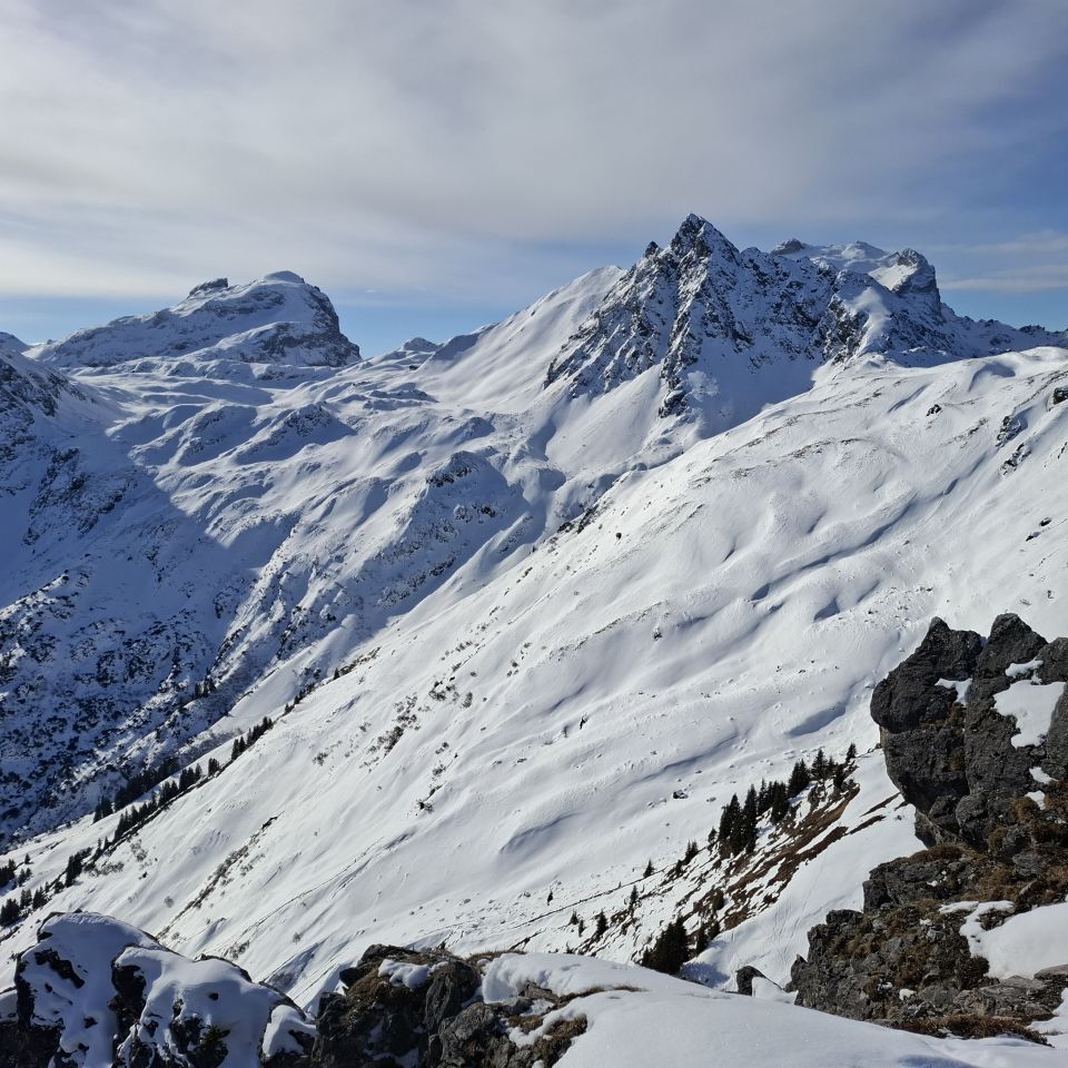 Durchgehende Schneedecke ausser bei Strassenüberquerung. Schnee besser als erwatet. Gipfelanstieg guter Stapfschnee, nichts vereist. Abfahrt zur Alpila Alpe sehr gut. Dann noch Anstieg Tobelsee und Abfahrt ins Gauertal. Hier auch besser als erwartet. Und dann noch zur Lindauerhütte auf best präpariertem Weg.