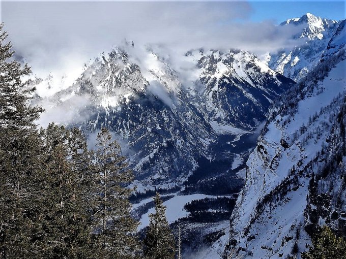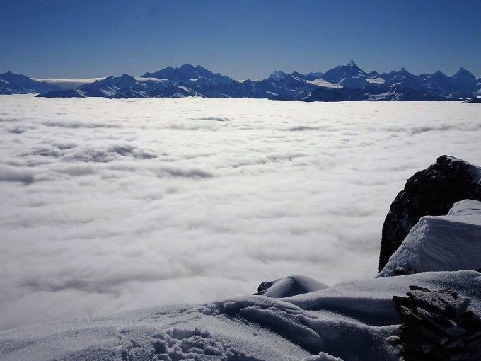 Heute dann eisiger Start in den Morgen bei -10°/-15° und Wind. Mit dem Kaltluftsee auf dem Lämmerenboden dann noch um einiges kälter. Beim Skidepot unangenehm bissiger NO-Wind - aber auf dem Gipfel fast windstill !