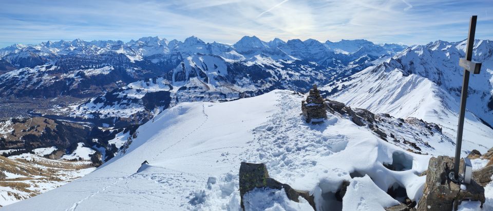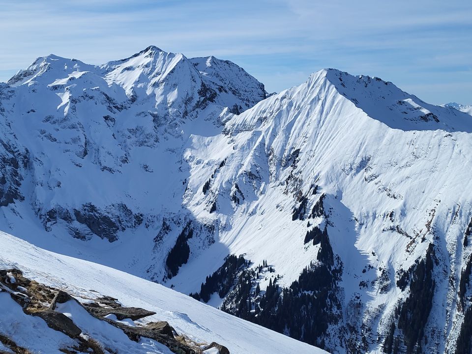 Von der Chirelsagi bis nach Bruni (Pt. 1404) hat es wenig Schnee, aber trotzdem musste ich nur ein kurzes Stück (ca. 50 m) zu Fuss gehen. Ab Bruni hat es genügend Schnee und eine gute Spur für den Aufstieg zum NW-Grat. Dieser ist abgeblasen und erfordert einen Aufsteig zu Fuss. Ab der Kuppe (ca. 2140 m) kann man wieder mit den Skis aufsteigen. Ich bin bis kurz vor den Gipfel auf den Skis geblieben, obwohl es unter dem steinigen Gipfelaufbau ab 2350 m bereits viele Fusspuren hat.
