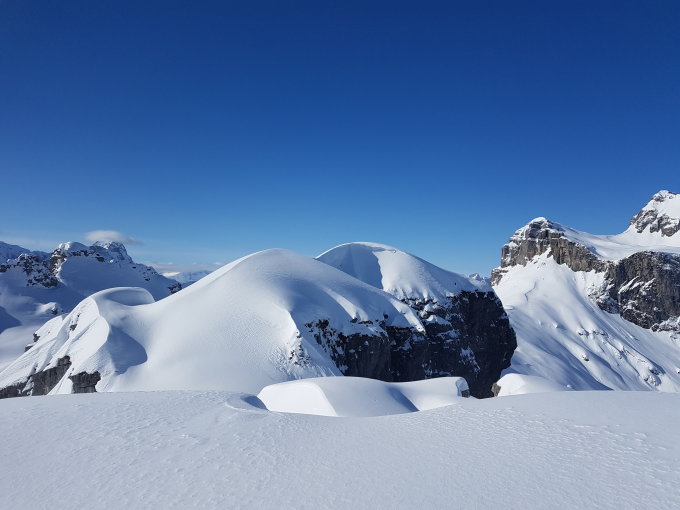 Schon nach dem Tunnel beim Bisisthal war kein Nebel mehr , das war schon ein gutes Zeichen, Start der Tour am 8.30 Uhr beim Sahli bei -9°, die Aufstiegsspur war etwas steil angelegt, am Raustöckli war es heute Windstill , wir stiegen nach hinauf zum Wintergipfel, nach kurzer Rast ging es im schönsten Pulverschnee steil in Richtung NW zum Sahli, die Verhätnisse waren heute sehr gut.