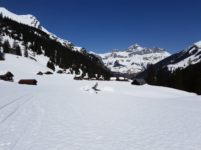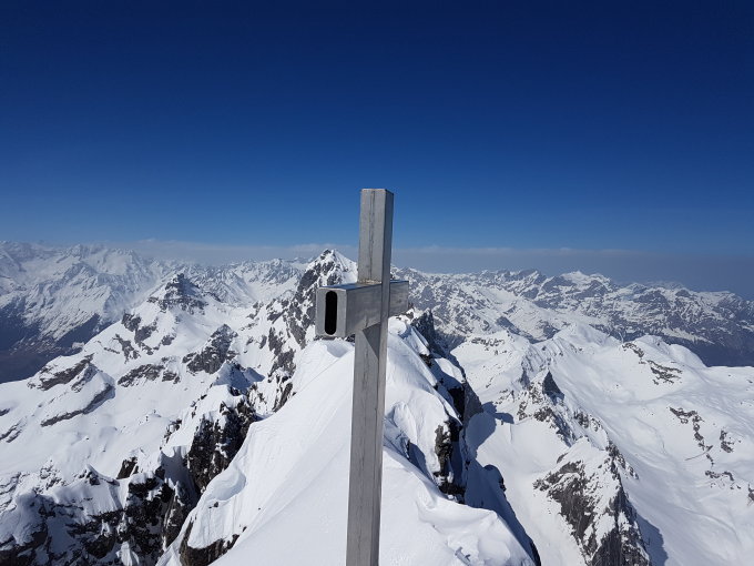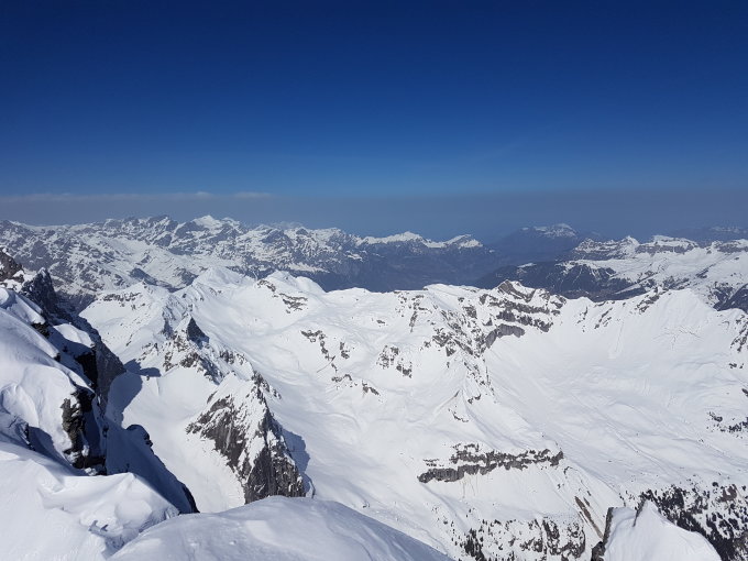 Fahrt mit Auto bis zur Brücke der Sittlisalpbahn, Start der Tour am 6.45 Uhr bei sehr schönem Frühlingswetter, die Ski konnten sofort montiert werden, nach der Brunnialp war der Schnee gut gefrohren, ab mitte Ruchenchäle erste Pulverschnee Reste, für den Schlussteil der Chäle waren die Harscheisen sehr Hilfreich, für den Schlussaufstieg zum Skidebot gab es noch lästige Stollen, Fussaufstieg zum Gipfel heute mit viel Wüllerei, am Gipfel des Gross Ruchens total Windstill, die Aussicht etwas trüb, bei der Abfahrt alle Schneearten angetroffen.