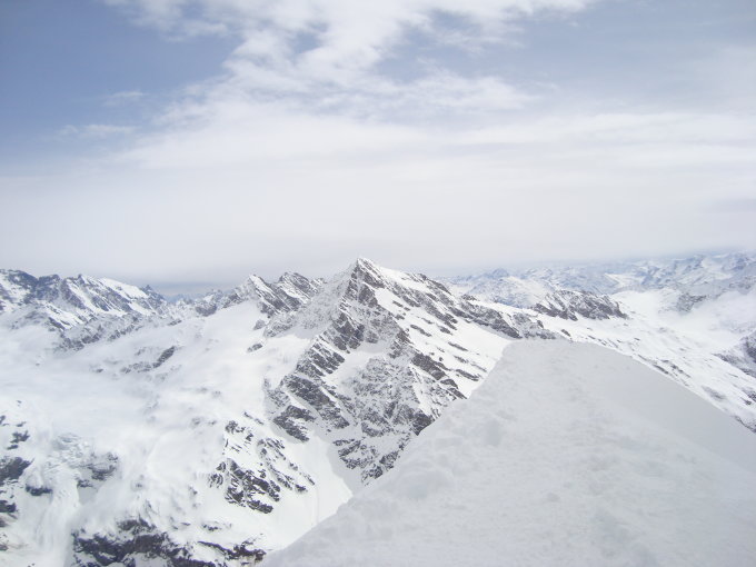 Der Zustieg vom Skidepot zum Gipfel und zurück ist durch viele Begehungen gut mit festen Trittspuren ausgestattet. Das selbstverständlich bei dieser Tour mitgeführte Pickel und die Steigeisen, leisten hier aber gute Unterstützung und Sicherheit.