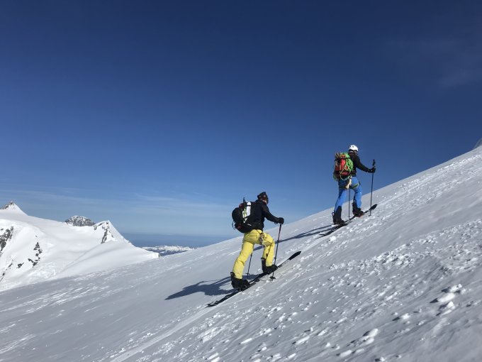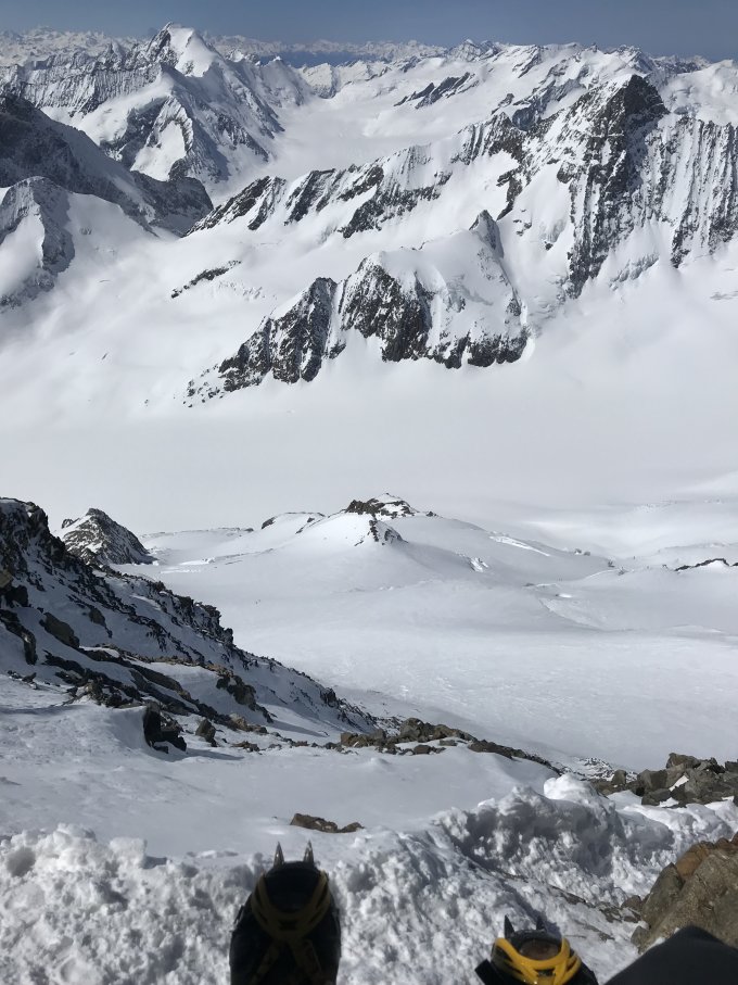 Super Verhältnisse. Viel Schnee, kein Eis, gute Trittspuren, kaum Wind und Sonnenschein. Der Hang vor dem Hugisattel ist etwa um 11:00 weich. Die meisten starteten am 5:30