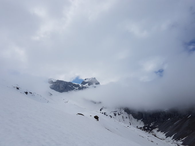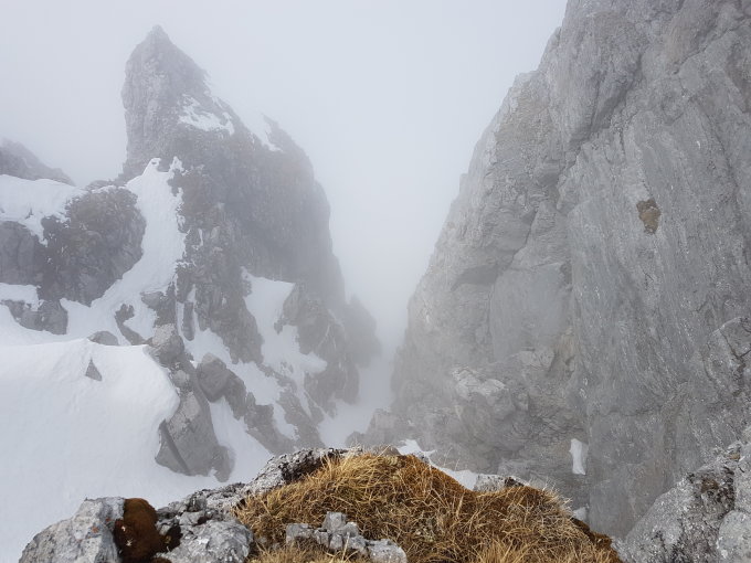 Die Alpstrasse hinauf zur Ruosalp ist Schneefrei, die Temperatur war heute recht kalt für diese Jahreszeit, die Schneeverhätnisse da durch sehr gut, der immer wieder kommente Nebel aber weniger toll.