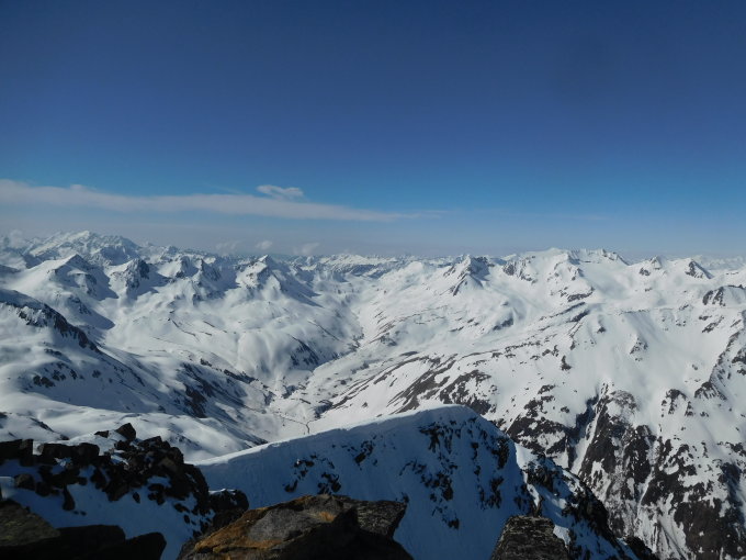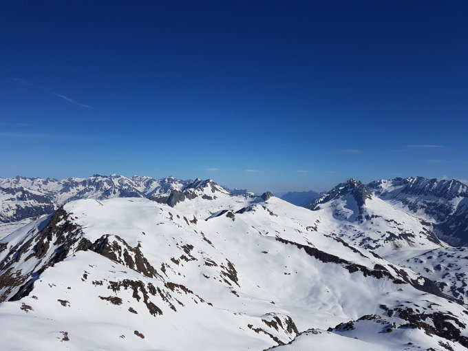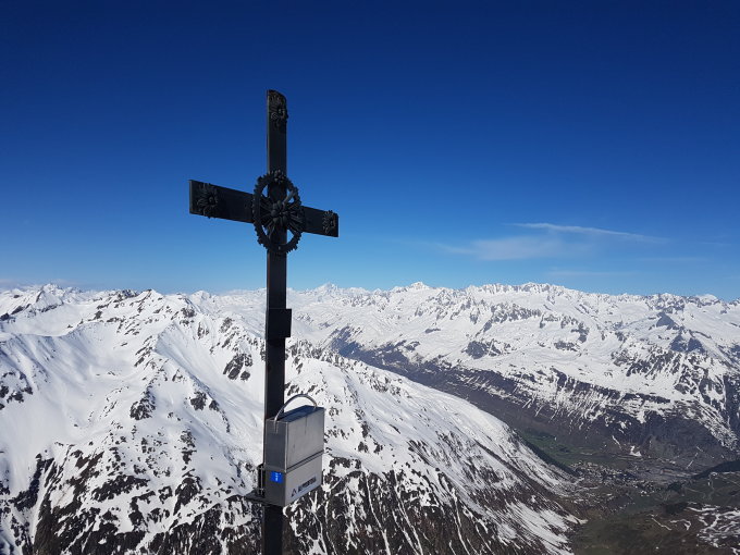 Beim Oberalppass noch Neblig, doch beim Tourenstart am 6.50 Uhr bei Miez sah es wieder sehr gut aus mit dem Wetter, die Ski konnten sofort montiert werden, auf den markierten Stangen folgen bis zum steillen Aufstieg zum Tomasee, die Spur war schon am Morgen sulzig, somit keine Harscheisen erforderlich, für den Fussaufstieg zum Gipfel guter Trittschnee, Achtung auf Wächten, die Spur führte ziemlich gefährlich hinauf, am Gipfel ziemlich Windstill mit toller Aussicht auf die Bergwelt.