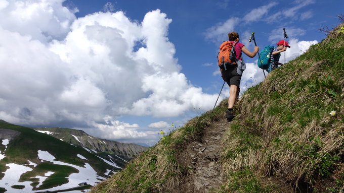 Ab Breitenfeld fast durchgehende Schneedecke bis zum Tüfengrat. Gut begehbar, jedoch sollte man nicht lange unter den Osthängen verweilen. Am Grat dann fast alles schneefrei, nur wenige Schneefelder die guten Trittfirn aufweisen.