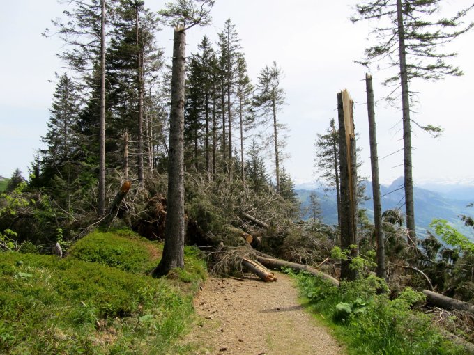 Lange Zeit schattig im Wald, führt der Bergweg durch ein landschaftlich einmalig schönes Gelände. Der Nagefluhfels ist allgegegenwärtig.