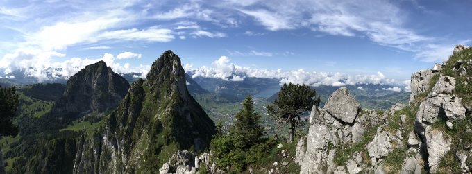 Der Wanderweg endet 100 m unter dem Gipfel des Kleinen Mythen und da liegt es nahe den Umweg über den Gipfel zu machen. Am Gipfel traf ich dann alle Weggefährten vom Haggenspitz und der Jodler belehrte mich, dass das Juutzen wäre, und nicht Jodeln.