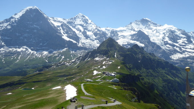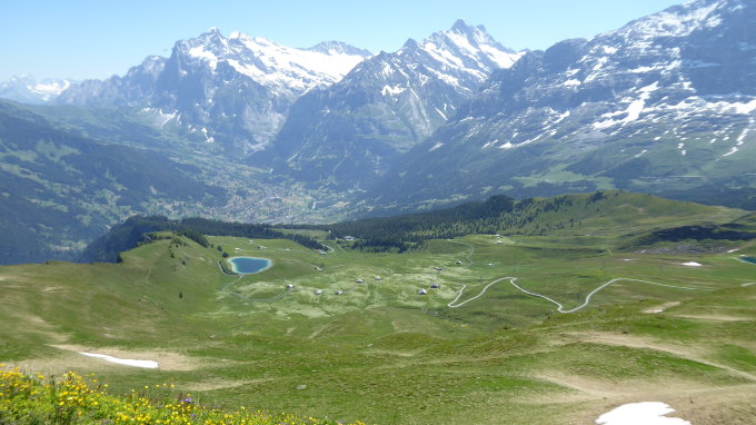 Schöne, einfache Panormawanderung mit tollem Blick auf Eiger, Mönch und Jungfrau durch Blumenwiesen. Rund um die Rinderhitta und ab Gummi sehr ruhig im Gegensatz zum Weg von der Kleinen Scheidegg zum Männlichen.