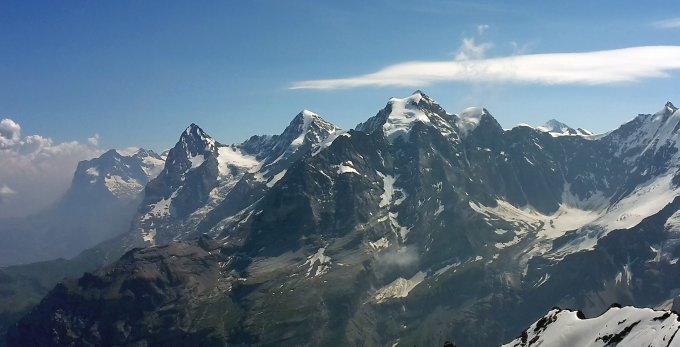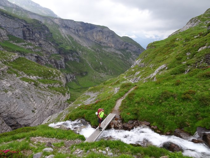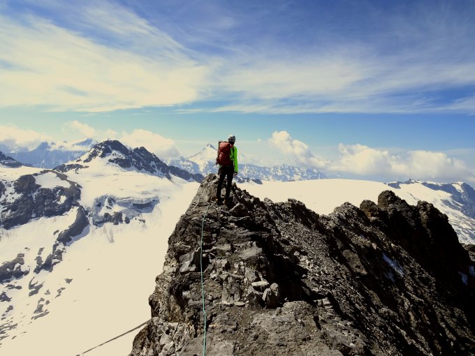 Wetter warm und sonnig, ab Mittag Quellwolken, aber bis nachmittags trocken. Außer uns nur noch eine andere Seilschaft am Berg. Mit Hüttenzustieg über die Bundalp und Abstieg über Gamchi ergab sich eine schöne Rundtour.