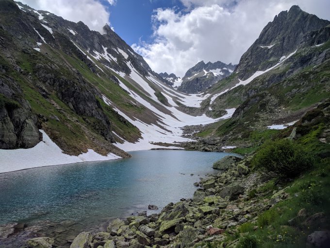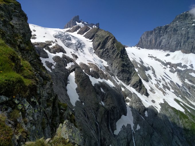 Die Südturmlücke apert jedes Jahr etwas früher aus und wird dann auf Grund des Schutts steinschlaggefährdet. Aber im Moment sind die Verhältnisse noch tiptop. Abstieg über den Glattfirn und die Kröntenhütte kein Problem.