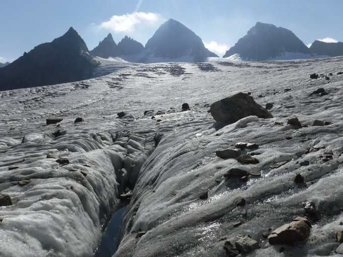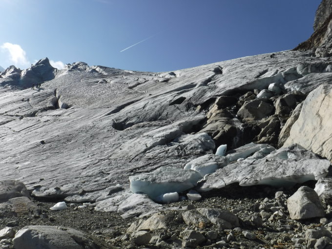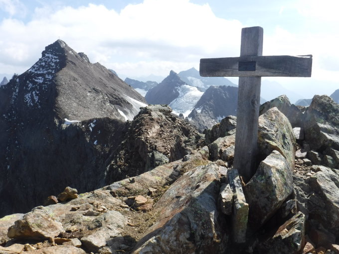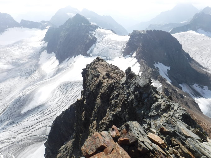 Auf dem Silvrettahorn gab es kein Gipfelbuch mehr. Ich habe ein kleines dort deponiert. Auf der Schneeglocke befindet sich ein rotes Buch, was noch ganz neu ist. Dortigen Einträgen von heute zufolge sind 2 Duos gleiche Route vor mir gelaufen. Im Aufstieg zum Silvrettahorn kamen mir 4 Leute entgegen.