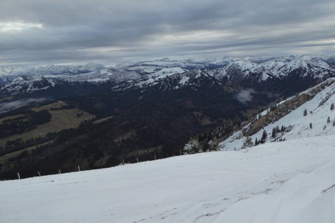 Nachmittags-Gassi-u.akt.Lagetour. Start 13:30h noch etwas verhangen mit leichten Aufhellungen. Schneegrenze um die 1400Hm. Am Gipfel max.5cm in Verwehungen schon mal merklich mehr, aber nicht wirklich Spurarbeit nötig. Ja bei Kaiserwetter kann jeder !?! Dafür war es von div. Stimmungen eindrucksvoll heute.