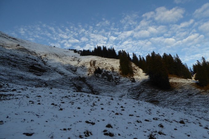 Mit meinem (Animal-GPS) und Zugmaschine August unterwegs, natürlich angeleint bei den vielen Gämsen in der Südflanke (Rothenkessel). Heute total alleine am Stuiben, eher selten dort.