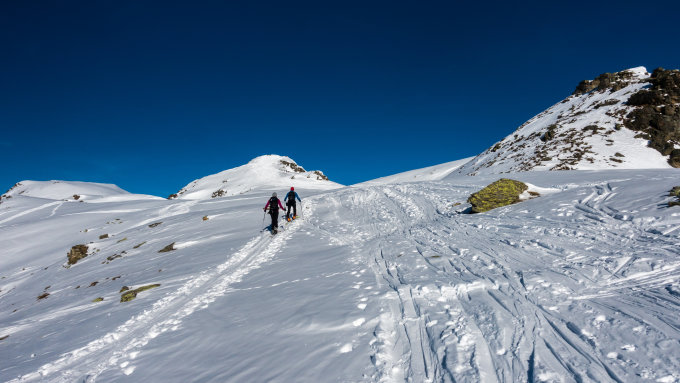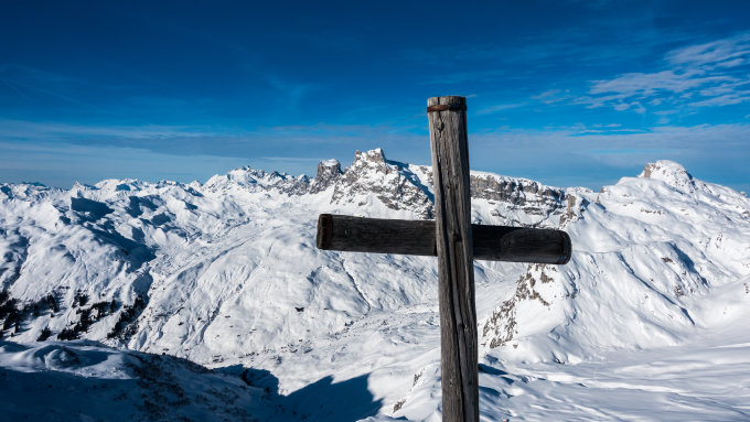 Start um 9 Uhr beim letzten Parkplatz vor Partnun bei -2°. Wolkenlos, windstill, glücklicherweise relativ mild, da fast der ganze Aufstieg zu dieser Jahreszeit im Schatten liegt. Auf dem Gipfel bei strahlendem Sonnenschein frühlingshaft warm. Herrlicher Pulver von oben bis unten. Im Gipfelbereich aufpassen auf Steine.