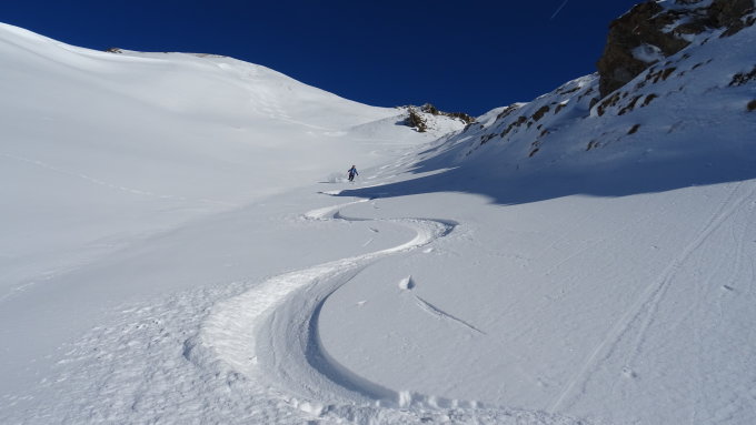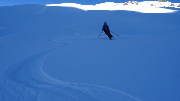 Wir sind nach dem Bunderspitz noch in das Couli rechts der Bunderchrinne aufgestiegen und dies war der Hammer und natürlich noch unberührt.