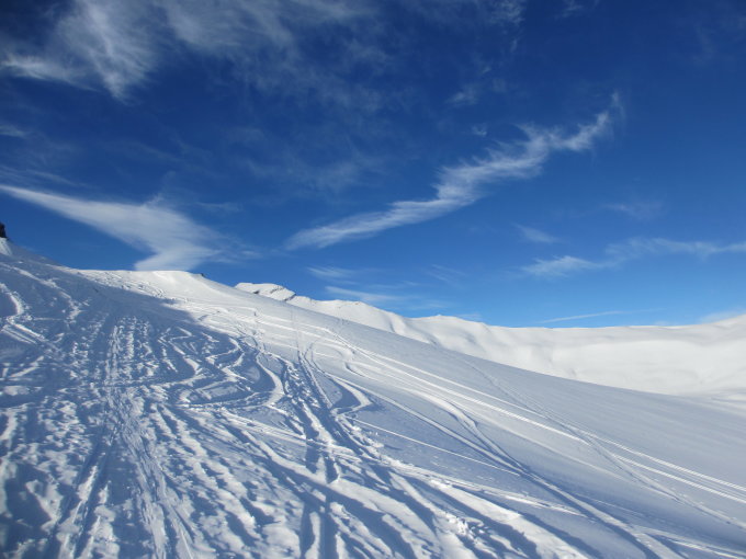 In der Abfahrt alle Arten von Schnee angetroffen.