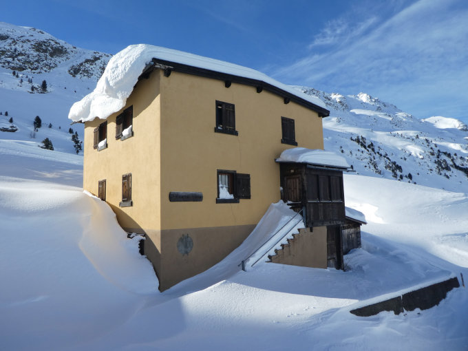 Beste Verhältnisse im Flüelatal, aber sehr kalt am Morgen. Aufstieg erfolgte grösstenteils im Schatten. Powder bis zum Abwinken, alles sehr gut eingeschneit - sogar das Wägerhuus ;-)Mit Ski z. T. ein wenig exponiert bis zum Gipfel. Direkt über Gipfelhang abgefahren. Schneebrett auf der Aufstiegsroute Gorihorn vom Gipfel aus entdeckt(siehe Bild), dürfte aber bereits zwei, drei Tage alt sein.