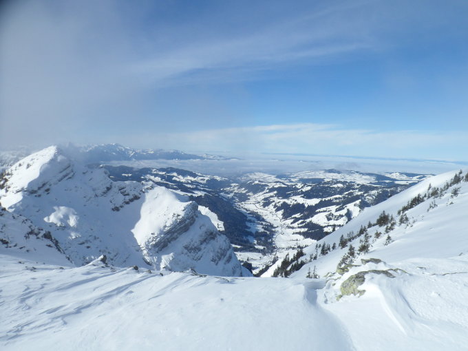 Wunderbarer Pulver, bei der Abfahr schon etwas schwer, mussten viel in der Aufstiegsspur fahren um vorwaerts zu kommen.