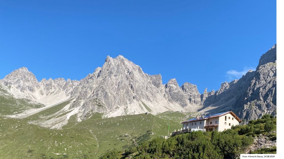 Hütte des ÖAV, Sektion Landeck, in den Lechtaler Alpen, im SO von Landeck, auf herrlicher Terrasse unterhalb des Steinsees gelegen.