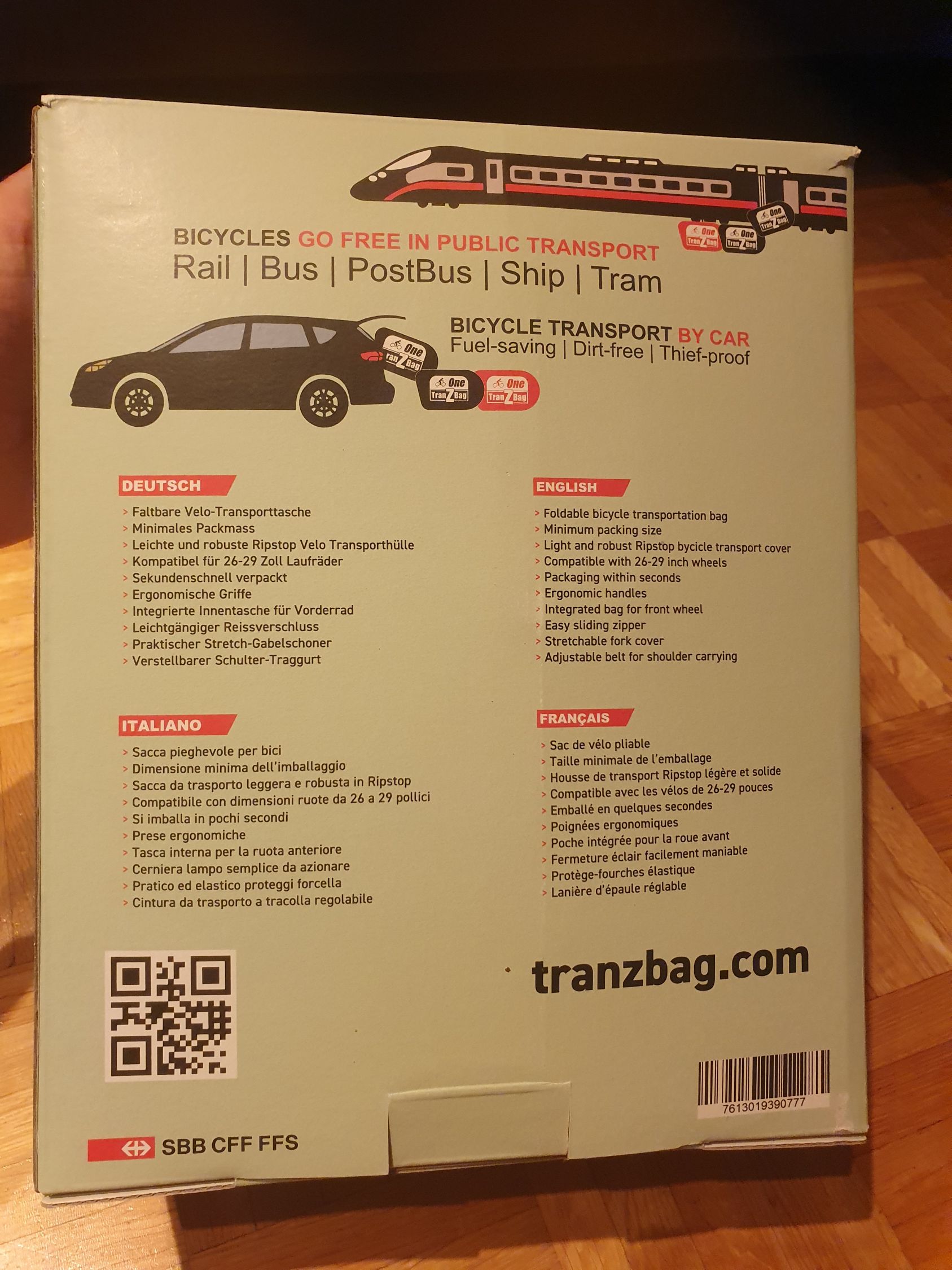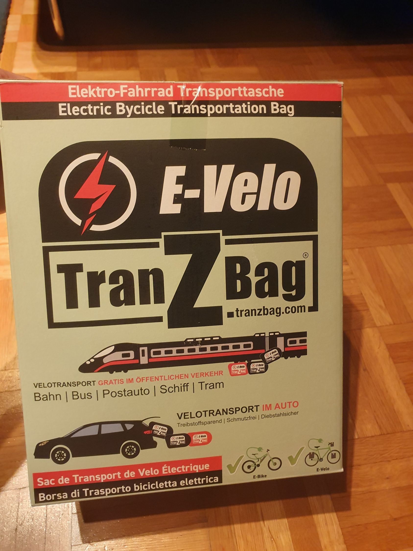 E-Velotransport im öffentlichen Verkehr gratis. Tranzbag macht das E-Fahrrad zum Gepäckstück. Offizielle Velo-Transporttasche der Schweizerischen Bundesbahnen SBB. Tranzbag ist europaweit der Standard für den gratis Transport von Velos im öffentlichen Verkehr.