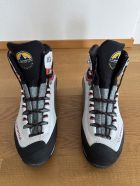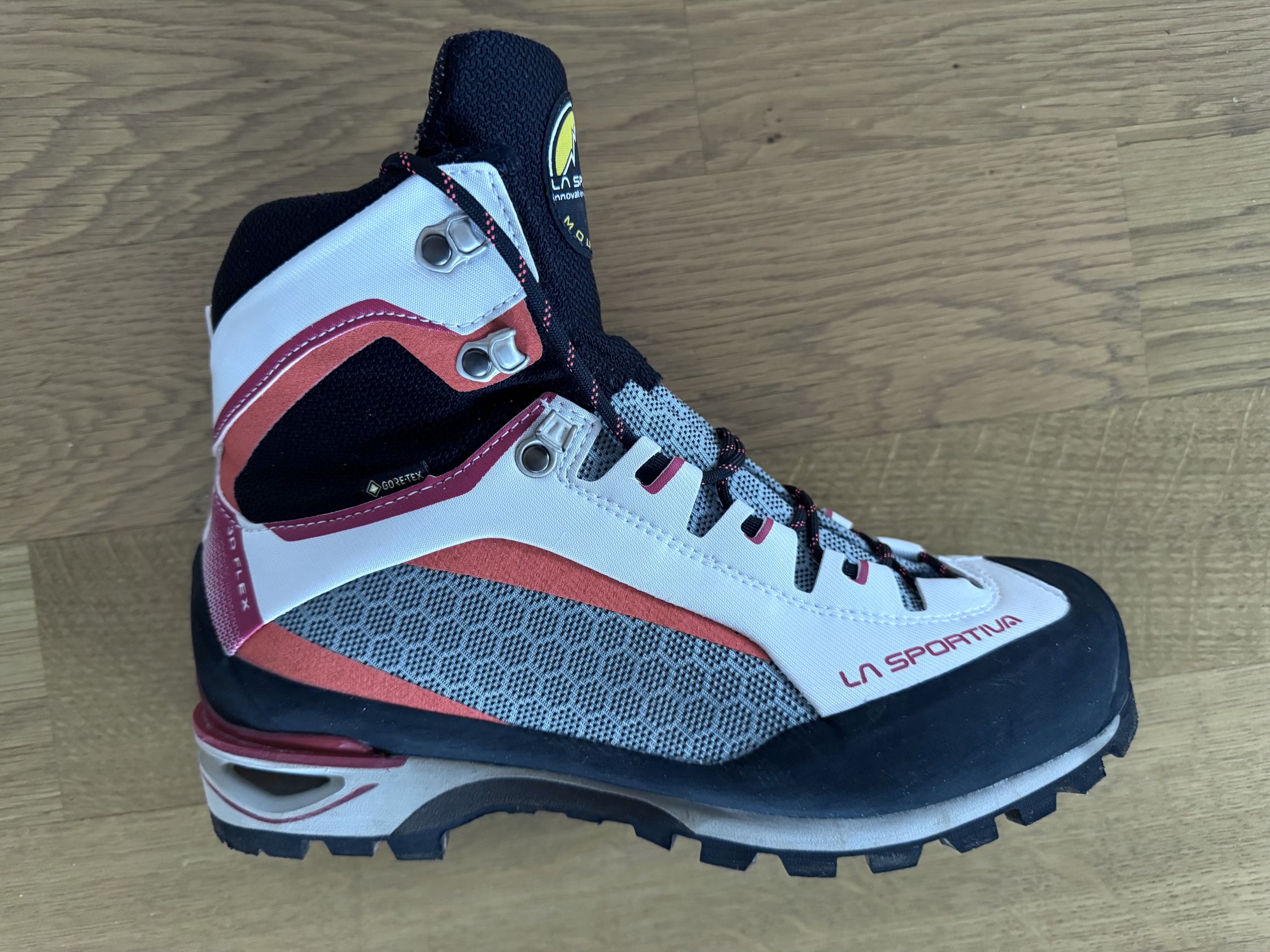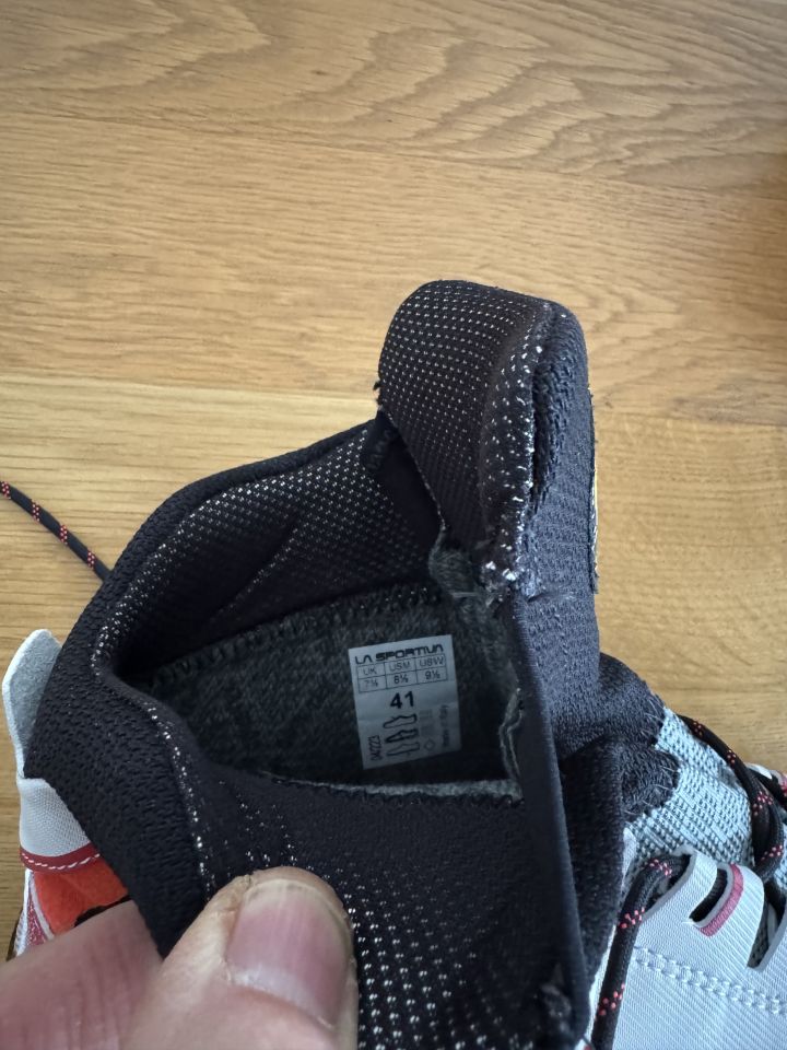 Der Schuh ist neuwertig und ohne Kratzer. Er wurde ein Mal getragen zum Einlaufen auf Wanderweg für 4 Stunden. Leider ist er im Bereich des Knöchels für die Besitzerin zu eng geschnitten. Aus diesem Grund wird er wieder verkauft.