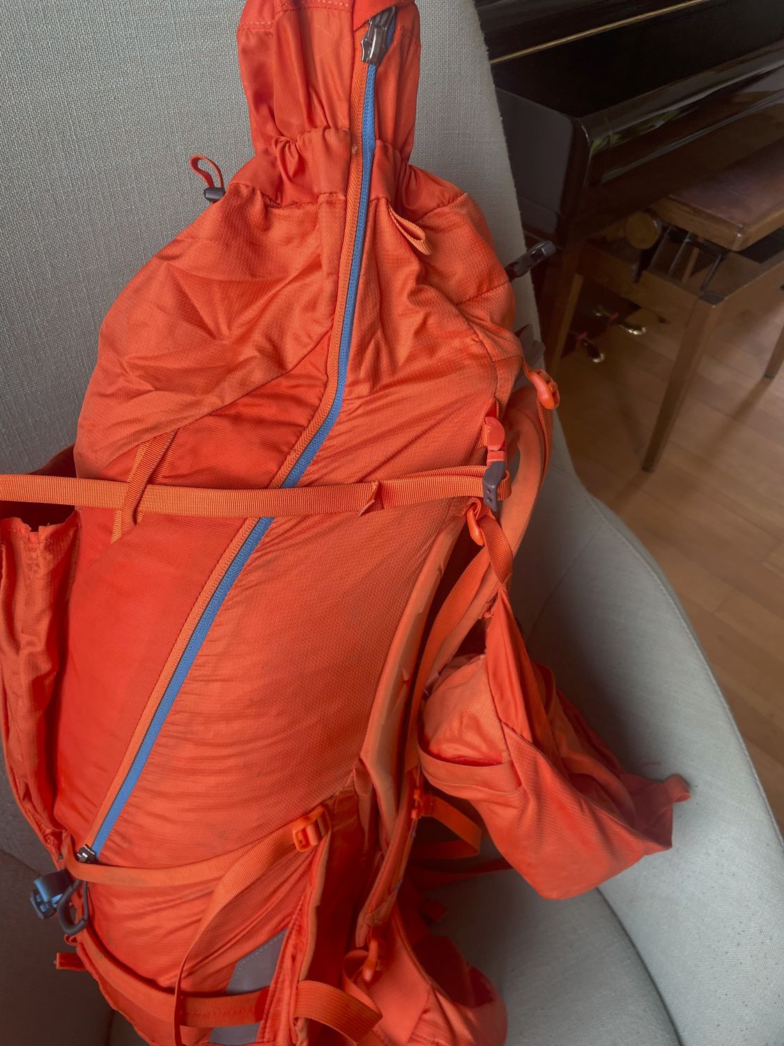 Rucksack weist sichtbare Gebrauchsspuren auf, besonders das Bodenfach unten. Er ist aber unbeschädigt und daher voll einsatzfähig. Verkauf wegen zu vielen Rucksäcken!
