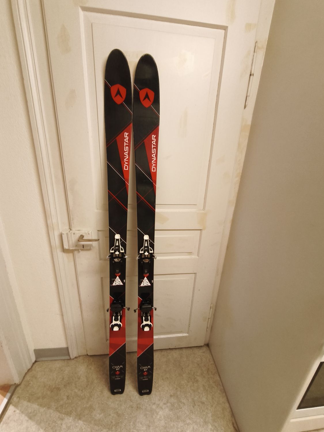 Dynastar Cham 87 Ski mit 184cm Länge. 127/87/103mm mit 16m Radius. Gebraucht, mit üblichen Gebrauchsspürren, jedoch in gutem Zustand. Mit Fritschi Vipec Pin Bindungen, Felle (von K2) und Fristchi Harscheisen - alles parat für die Tour. Die Bindungen sind momtentan auf 324mm Sohlenlänge montiert; die hintere Bindung kann 25mm verstellt werden (also +/- 1.25cm Sohlenlänge soll OK sein, ohne wieder zu bohren). Eine Hülle ist auch dabei. Der Hund ist nicht im Preis inbegriffen.