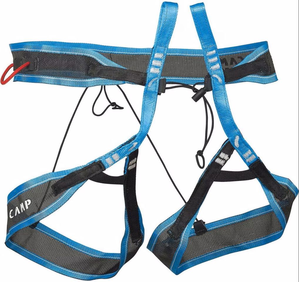 Dieser Quantensprung in Sachen "light & fast" gelingt Camp mit einer innovativen Konstruktion aus Monofilament-Nylon in Kombination mit hochfestem UHMW-PE (Ultra High Molecular Weight Polyethylene). Die Leichtigkeit liegt an der Grenze des Möglichen, bei zugleich hoher Reiss- und Abriebfestigkeit sowie grossartiger Bewegungsfreiheit. Eine elastische Schnur mit Kordelstopper ermöglicht das Regulieren des Gurtes, während die Stabilität der Beinschlaufen durch eine zweite, ähnliche Schnur gewährleistet wird, mit der der Gurt dank eines einfachen Knotens weiter angepasst werden kann. Aus extrem robustem Hypalon® bestehen die Befestigungspunkte der Schnüre und die Materialhalterung, die eine abnehmbare Schnur zur Befestigung der Klettersteigkarabiner hat (für Skimo-Rennen erforderlich).