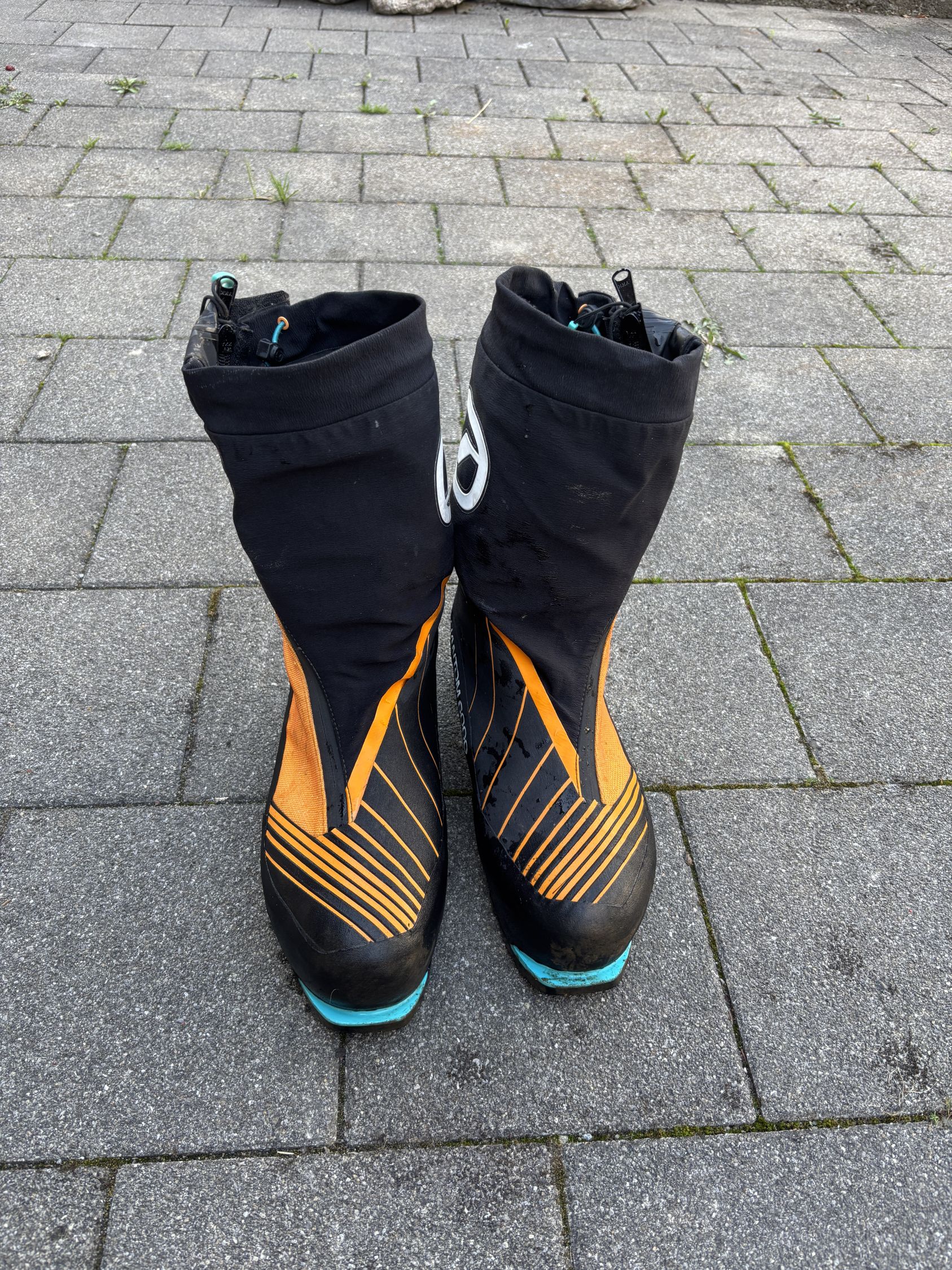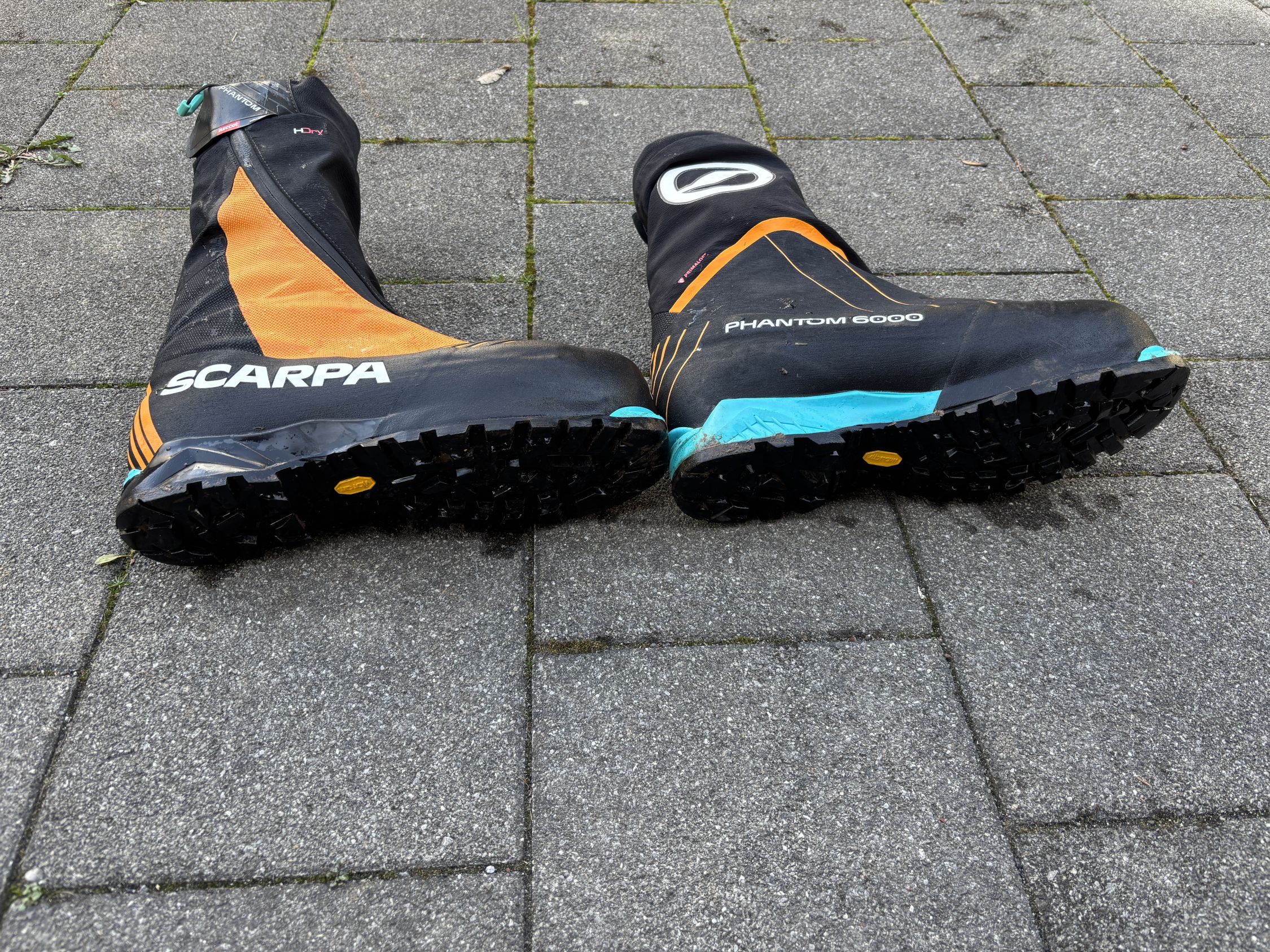 Expeditons-Bergschuhe SCARPA Phanton 6000, Grösse 47 (passt für normale Schuhgrösse 44 1/2 - 45). Kauf im Sommer 2023 bei Bächli Bergsport. Im Herbst 2023 für 2 Wochen Expedition verwendet, seit dem nicht mehr gebraucht.