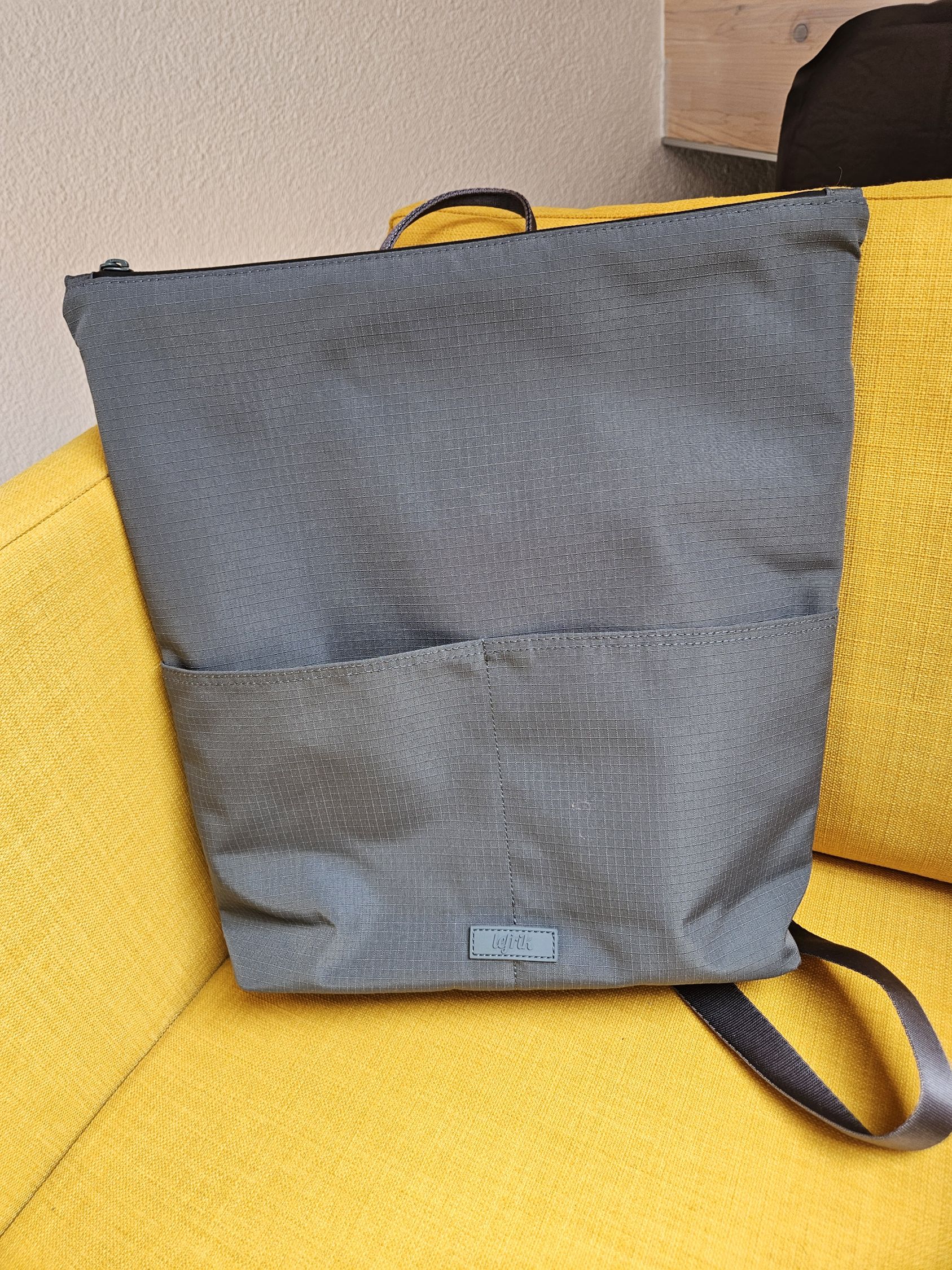 Geräumiger, bequemer Rucksack für den täglichen Gebrauch. Das Hauptfach lässt sich mit einem wasserdichten Reißverschluss verschließen und verfügt über zwei separate Fächer zur Aufbewahrung kleiner Gegenstände, eine Reißverschlusstasche und ein spezielles Fach für Wasserflaschen.
